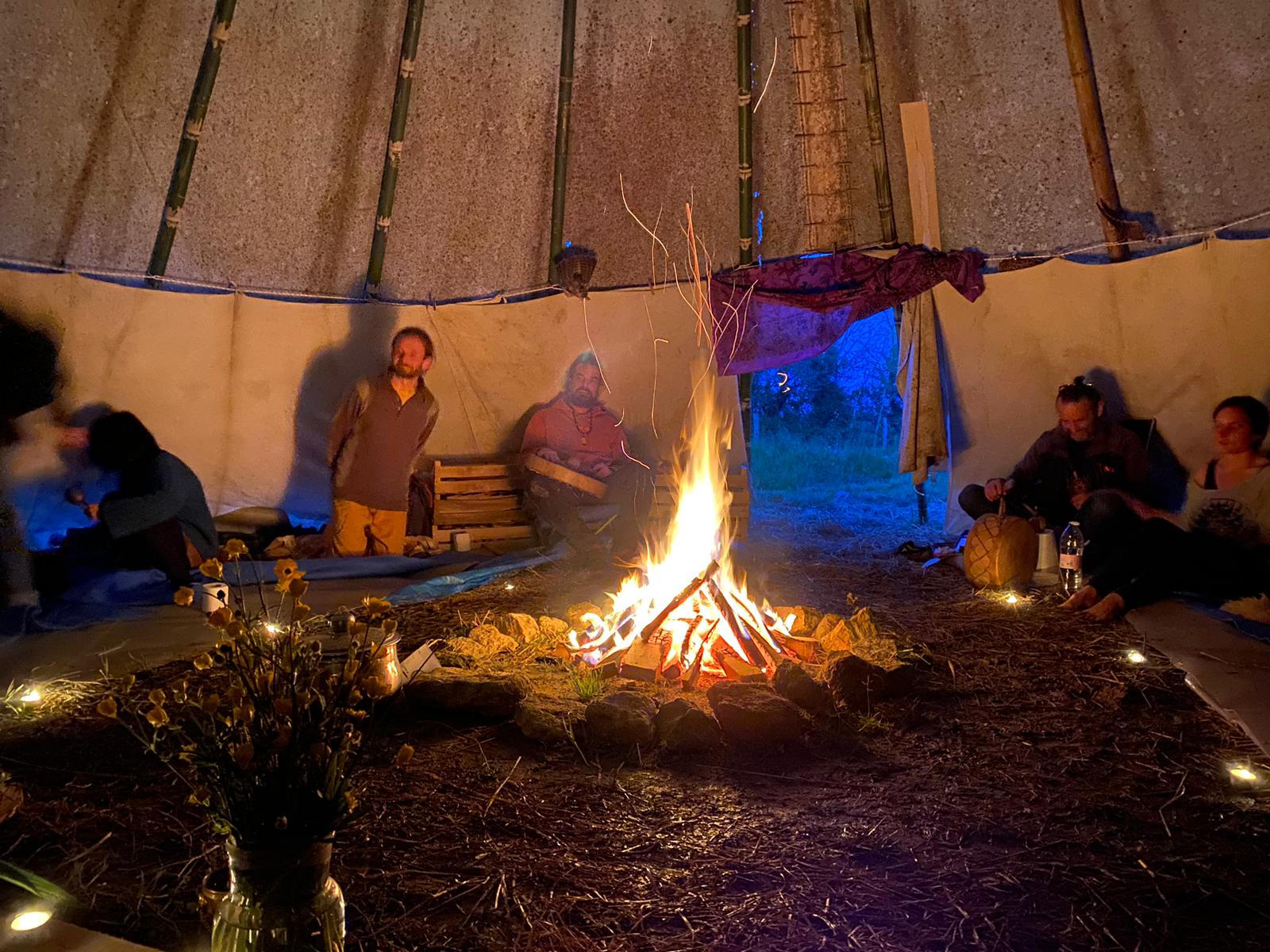 Cette cérémonie nous permet de nous relier aux Esprits de la Nature, à Grand Esprit et à Mère Terre. Construite avec des branches de saule, la hutte nous accueille à chaque cérémonie pour une nouvelle naissance à la Vie.